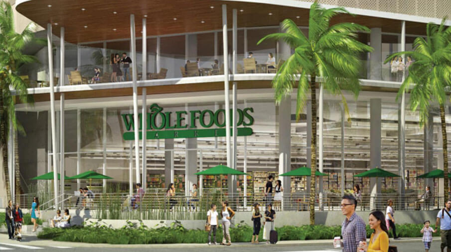 目玉はコンドミニアムのひとつ、アエオの1,2階に今年6月オープン予定のスーパーマーケット「ホールフーズ・マーケット」です。